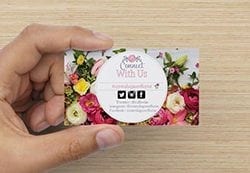 Eager to keep that momentum going, Levine created social media business cards. The card features a photo of ranunculus, hydrangea and alstroemeria overlaid with a white circle printed with the shop’s Twitter and Instagram handles and Facebook address, along with the hashtag #centralsquareflorist.