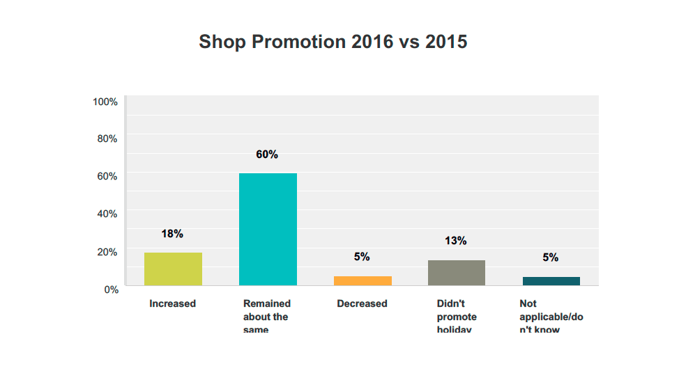 At the same time, 41 percent of respondents who decreased promotional efforts or did not promote the holiday at all experienced a sales decrease.