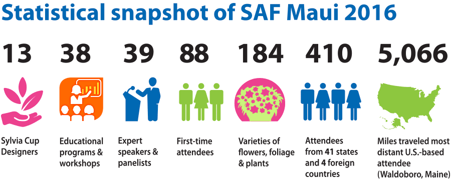 Oh, yeah, and did we mention that the convention this year is in paradise? That turned out to be a big draw, too. Overall, more than 400 industry members are expected to join SAF in Maui this week for the convention, which includes dozens of educational sessions, recognition of some of the top industry leaders and competition that put forward the best in design and new varieties.