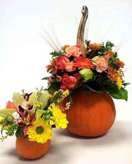 Pumpkins are the key to higher Thanksgiving sales at a British Columbia shop, where flower-filled squash attract customers looking for centerpieces and hostess gifts.