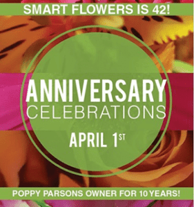 On April 1, Poppy Parsons, AIFD, CAFA, reached the 10-year mark as owner of Smart Flowers in Swift Current, Saskatchewan—an accomplishment she chose to celebrate with customers (i.e. the people who helped her achieve it) during an anniversary party.