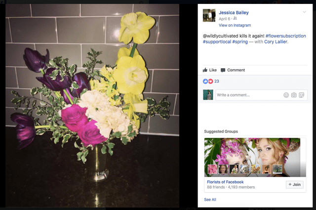 Daluga put a “subscription services” category on her shop’s website and Facebook profile. She also advertises it on Instagram. “Instagram users care a lot about ‘lifestyle’ topics,” she said. “They’re the type of people who’d appreciate having flowers in their home regularly.”