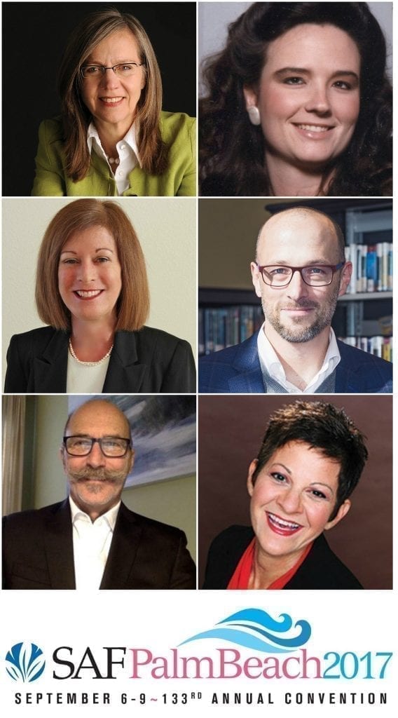 Top Left: Anna Ball of Ball Horticultural; Susan E. Yoder of Seed Your Future; Diane Thielfoldt of The Learning Café; Jamie Notter of WorkXO; Barry Gottlieb of the Coaching the Winner’s Edge; and Glenna Hecht of Humanistic Consulting LLC are among the 38 speakers present at SAF Palm Beach 2017.