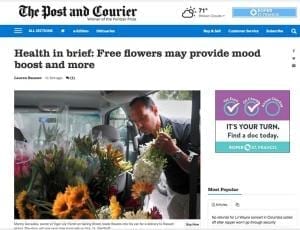 Manny Gonzales is pictured in an article by The Post and Courier newspaper about Tiger Lily Florist’s Oct. 11 Petal It Forward event in Charleston, South Carolina.