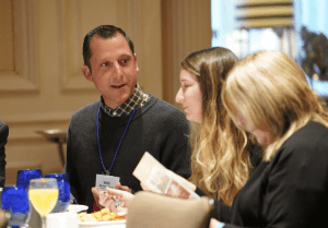 Mike Mooney of Dramm & Echter in Encinitas, California, preps for Capitol Hill meetings alongside Nicole and Sue Palazzo, of City Line Florist in Trumbull, Connecticut.