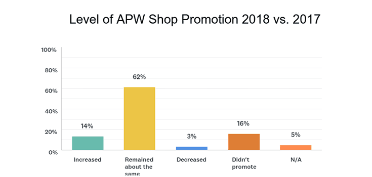 About 62 percent of total respondents said their level of APW promotions was about equal to efforts in 2017. Sixteen percent did not promote the holiday.