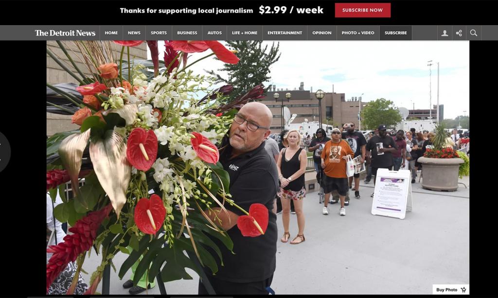 Jerome Raska, AAF, AIFD, PFCI, co-owner of Blumz…by JR Designs delivers an arrangement to Aretha Franklin’s visitation service Tuesday, Aug. 28, in Detroit. Read more.
