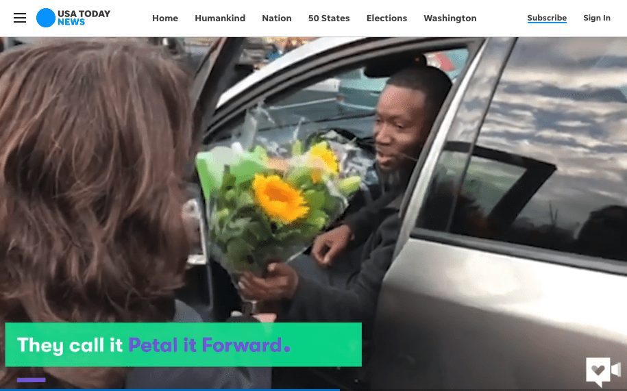 Petal It Forward also ranked #17 in bestlifeonline.com’s list of The 30 Most Heartfelt Random Acts of Kindness in 2018, reaching an audience of 572,000.