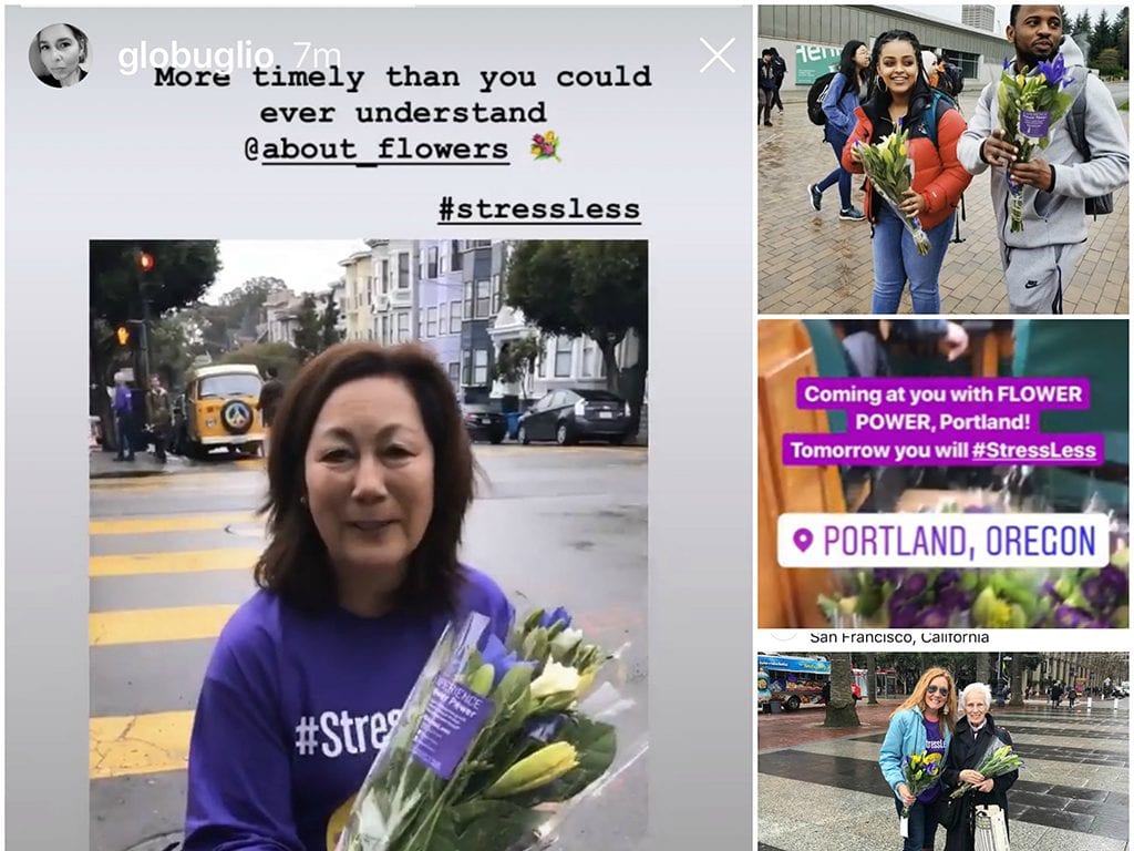 To take the message even further and to reach the millennial audience, SAF partnered with key social influencers with large, dedicated followings. Portland fashion blogger Kristina McInness joined SAF on location and spread flower power to her 87,000 Instagram followers and 5,000 blog subscribers. In an April 17 blog post, she outlined some of her favorite stress-reducing activities and detailed her personal experience giving and receiving flowers: