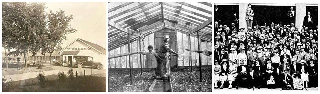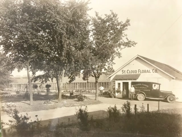 St. Cloud Floral in St. Cloud, Minnesota, has a long proud line of family owners. First established in 1892, it became St. Cloud Floral in 1912 under owner J.A. Matteson. Succeeding owners included R.G. Allison (1927-1947), Alice and Lucile Strachan (1947-1950), John Linneman (1950-1956), and Bowers and Jansen (1956-1959). The original floral shop included greenhouses, which were destroyed in the 1950s. The Strommen family had the longest run of ownership, from beginning with Gil and Millie Strommen in 1962 and then Paul and Jan Strommen in 1972. When Paul Strommen died unexpectedly, Duane & Rhoda Paurus, who’d already been working for St. Cloud Floral for 10 years, purchased the business.
