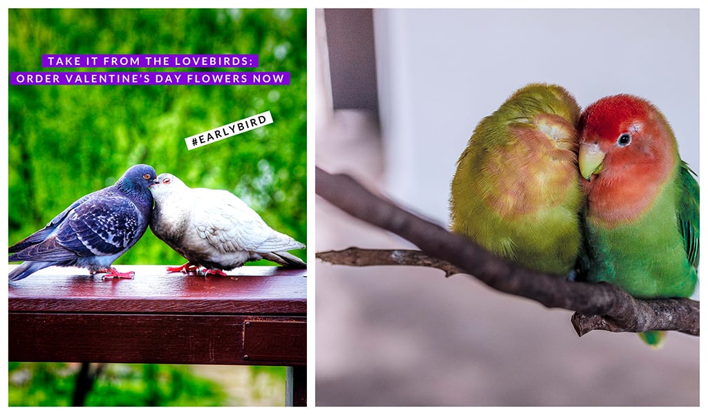 “Don’t get feathers all ruffled, flitting about at the last minute in February. Order Valentine’s Day flowers now. You know we’re already thinking about the big day, and we’d love to spend some time helping you find just the right bouquet for your lovebird. #earlybird” Post this text to your social media channels along with a photo of birds from a royalty-free site like UnSplash or a suggested graphic SAF created by the WordSwag app.