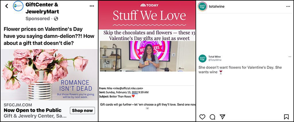 • Express Clothing ran an email campaign saying they offered “something better than roses.”