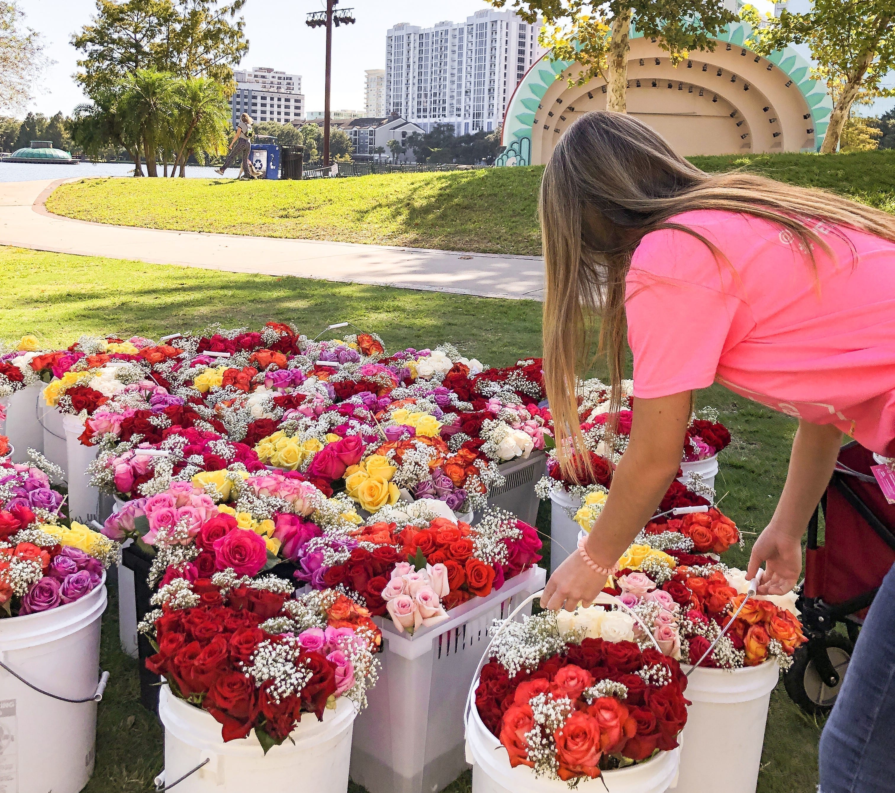 If labor is a concern, consider finding a community organization that could benefit from getting their message out through the event, while also lending manpower. Volunteers could help assemble bouquets, sticker them and distribute them. The organization can also include information about their mission in the process.