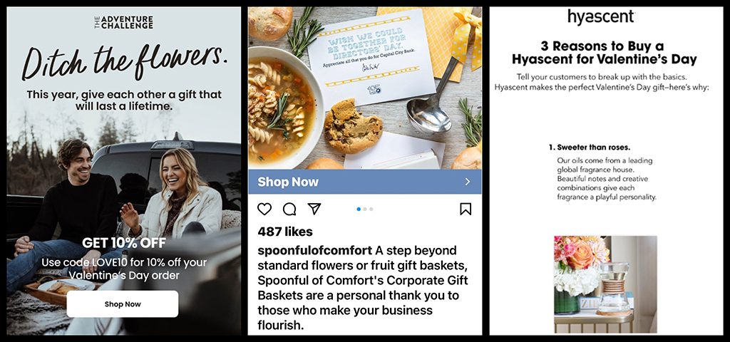 The Adventure Company, which creates custom guidebooks for date nights, family vacations and more, advertised their “Couples Adventures” guidebook for Valentine’s Day by sending an email with the subject line, “Ditch the flowers this year.” The body of the email said, “This year, give each other a gift that will last a lifetime.”