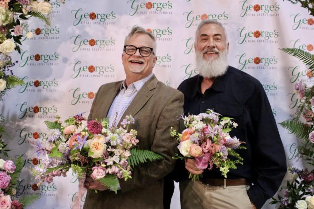 Doug Lindamood (left) and George Clements (right) have run George’s Flowers in Roanoke, Virginia, for more than 40 years and say the key to the business’s longevity is embracing technology and making community connections.