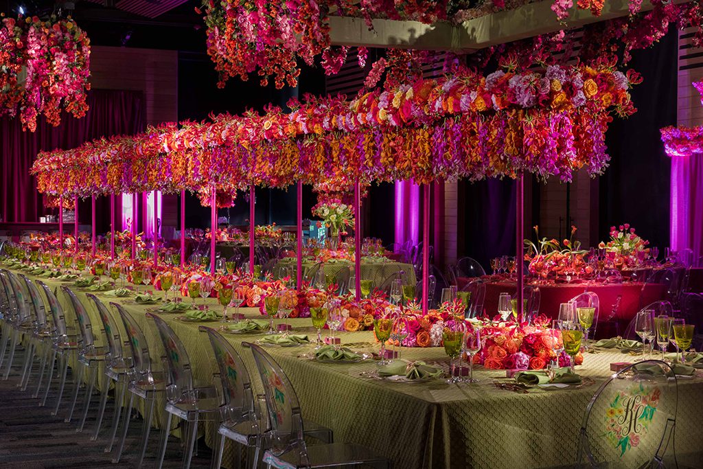 For instance, if the client’s venue doesn’t allow vendors to set up several hours in advance, designers will need to work ahead in the studio, which means relying on more unsustainable products to hydrate, support, and transport designs to the event. Additionally, Schaffer lets couples know that certain structures, such as chandeliers or arches, require using materials that aren’t seen as sustainable. An alternative material — chicken wire — is not without drawbacks. While it can be used several times, which most green-minded consumers appreciate, “it is covered in plastic, and if it isn’t, it will rust and leach into water,” Schaffer says. The solution? “Compromise,” he says. “Decisions about sustainable design come down to what your client can live with — and what you can live with.”