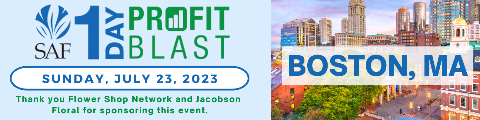 “SAF’s 1-Day Profit Blast gave me an opportunity to visit with other shop owners and compare, discuss, and share ideas of daily operations,” she says. “I have been able to share with the staff how the floral industry is constantly changing in so many ways.”