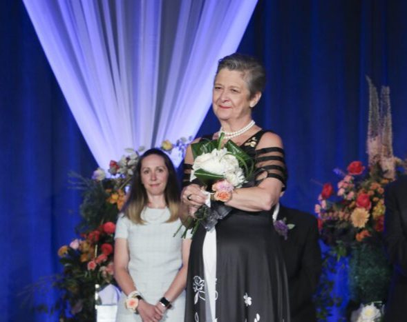 Leanne Kesler, AAF, AIFD, FDI, PFCI, education director of Floral Design Institute, received the Tommy Bright Award in 2024. Also pictured is SAF Awards Committee member Renee Tucci, AAF, AIFD, PFCI, of Renee Tucci Creative.