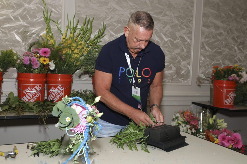 Lacey is the design and education director at The Profitable Florist in Jacksonville, Florida, and an experienced floral design competitor. Participating in the Sylvia Cup was on his “bucket list” because of its reputation and the opportunity to be in the same room as floral designers he holds in high regard.