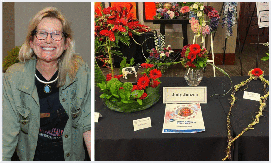 Janzen, of Chase Flower Shop, and 18 other contestants competed for the grand prize: $3,000 cash, a trophy, and complimentary registration for SAF Amelia Island 2026. The first runner up, Libbie Conley, CF, of Grand Blanc Florist in Flint, Michigan, won $500. The second runner-up, Olga Savchenko, AIFD, of Dragonfly Floristic in Los Altos, California, won $250. The cash prizes and the hard goods used in the designs are sponsored by Smithers-Oasis. Certified American Grown provided the fresh product.
