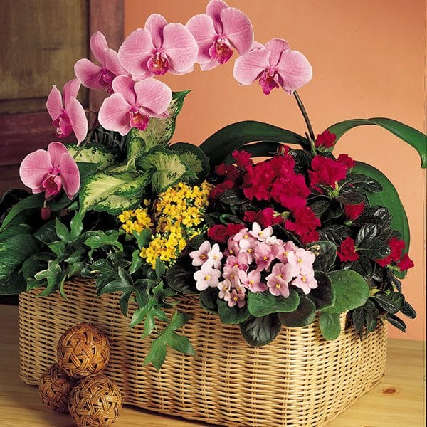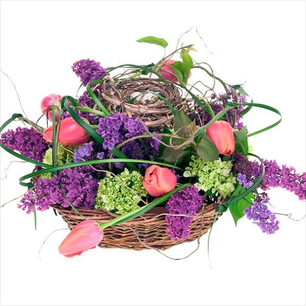 Brighten someone’s day with a basket of cheer. Basket arrangements are a perfect complement for a casual living home.