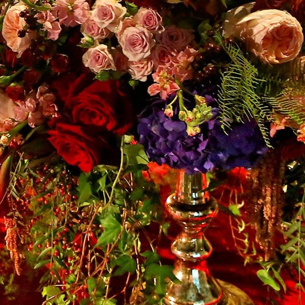 - Arrangements and centerpieces in robust hues of purple and burgundy will create a sensuous, lush setting for dinners, both intimate and large.