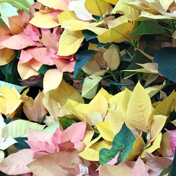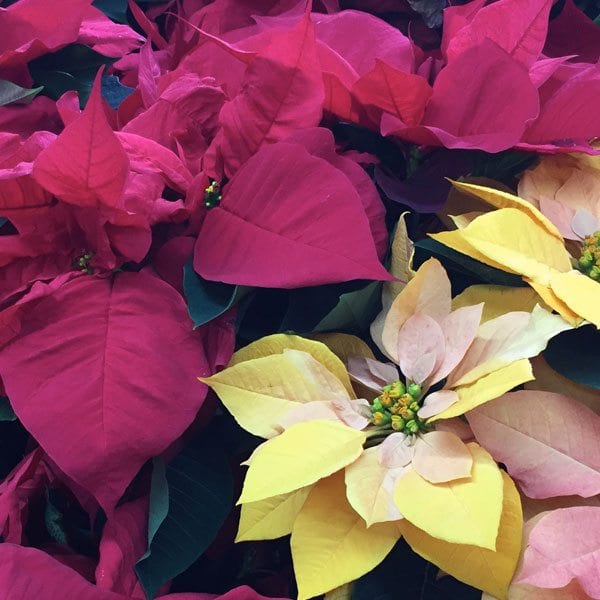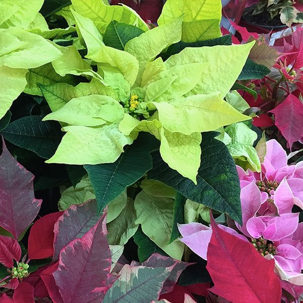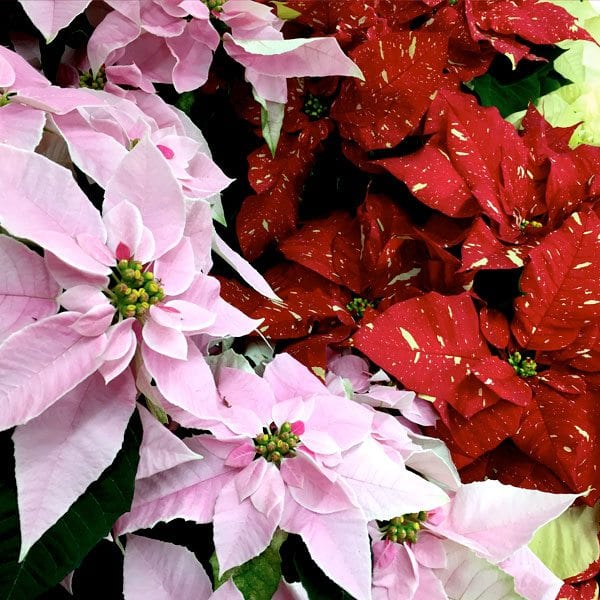 Florists carry a wide selection of poinsettias in pink, peach, white, plum and speckled or marbled varieties, in addition to the traditional red.
