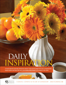 Use SAF’s “Daily Inspiration” promotional materials to highlight the emotional health benefits of flowers: