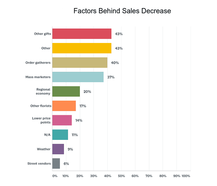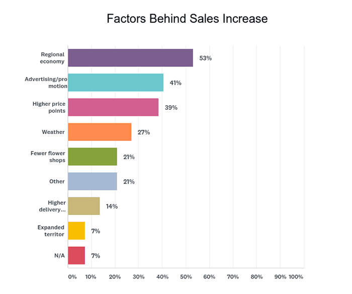 Fifty-three percent of florists who saw increased sales credited their regional economy. Other contributing factors for this group: